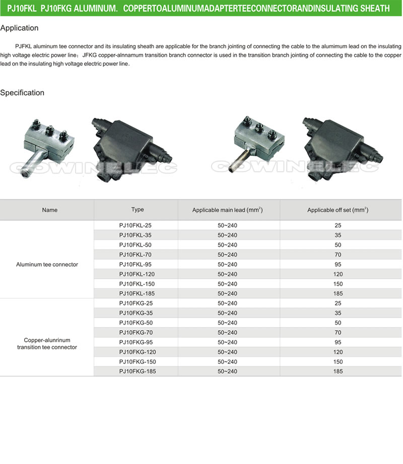 >> PJ10FKL PJ10FKG aluminum coppertoaluminumadapterteeconnectorandlnsulating shea