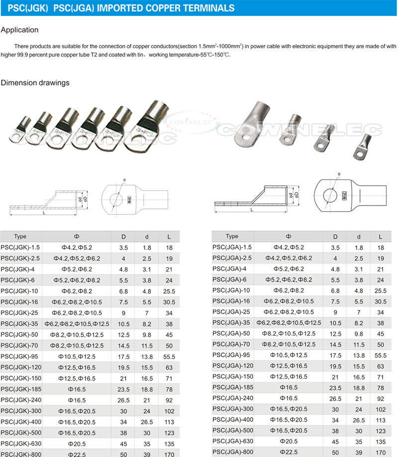 >> PSC(JGK) PSC(JGA) imported copper terminals
